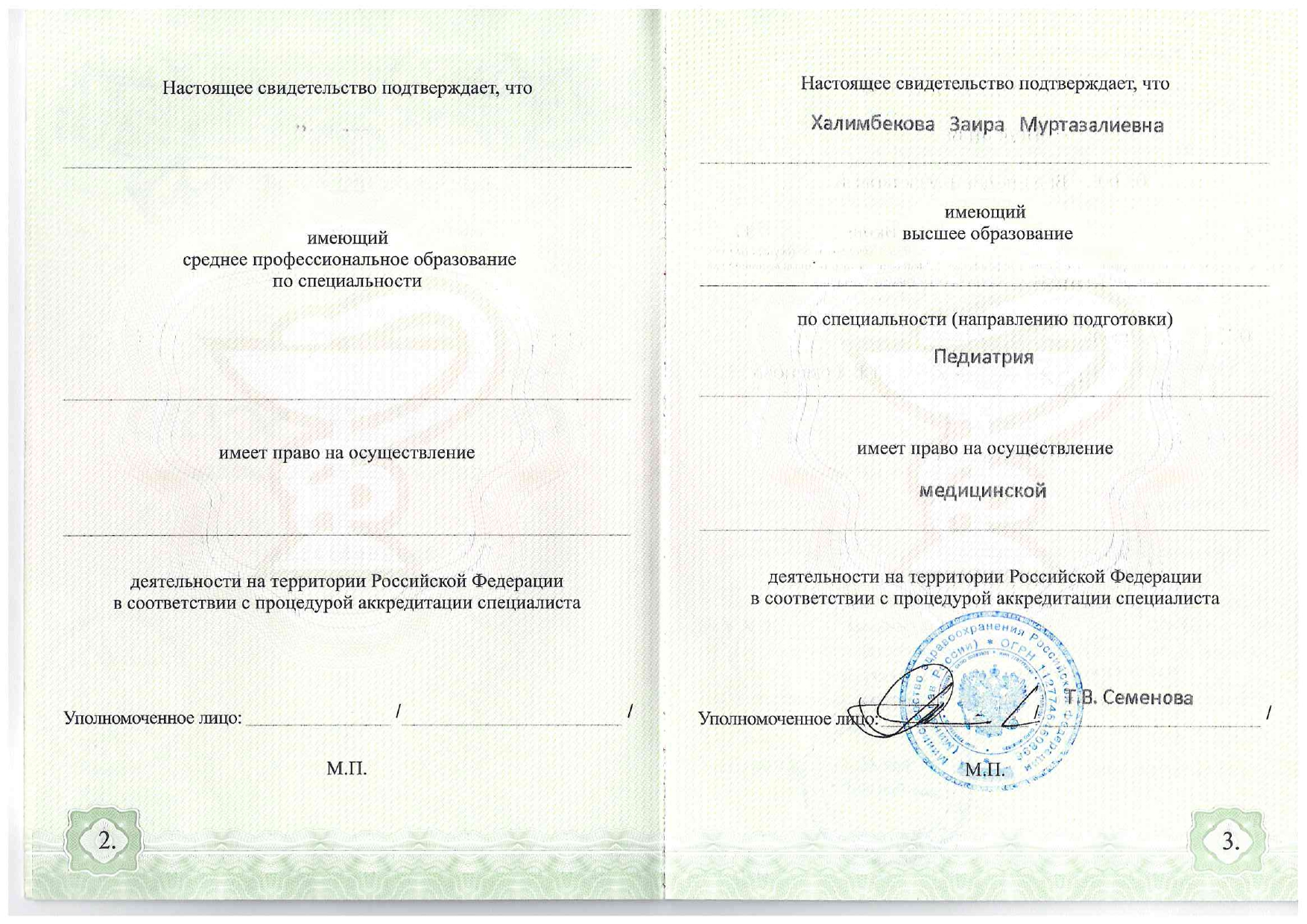 Медицинский стаж: 6 лет