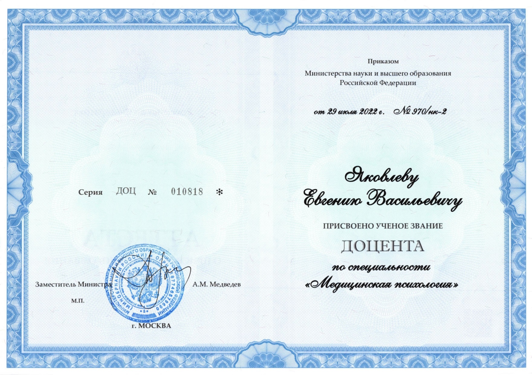 Яковлев Евгений Васильевич является профессором кафедры психофизиологии Института прикладного психоанализа и психологии Университета при МПА ЕврАзЭС г. СПб (заведовал кафедрой с 2022 по 2025 гг), профессором кафедры медицинской реабилитации и спортивной медицины ФГБОУ высшего образования «Санкт-Петербургский государственный педиатрический медицинский университет» МЗ РФ. Под его руководством защищено 12 выпускных квалификационных (дипломных) работ по направлению подготовки 37.03.01 "Психология". Научный руководитель двух кандидатских работ и консультант докторской диссертации.